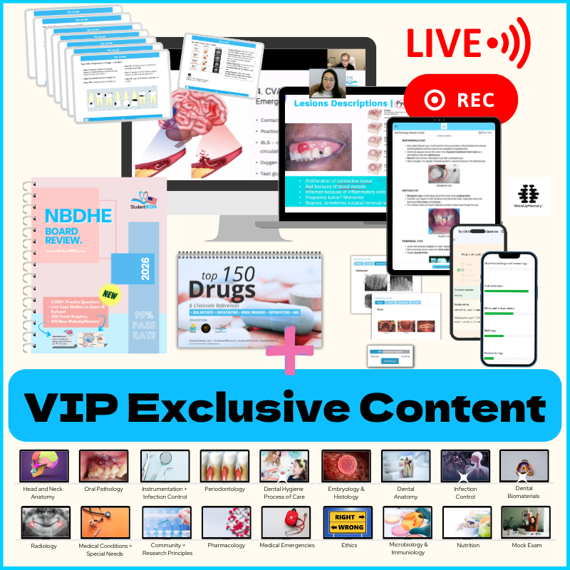 Over the past 8 years we have created an entire learning platform that has proven successful with our 99% pass rate. The combination of our NBDHE Book and Top 150 Drugs Booklet, mobile study app, WakeUpMemory™️ techniques, level 1, 2, 3 questions, LIVE and exclusive Case Study & Summit Reviews and a satisfaction guarantee to set you up for success unlike any other review option.
