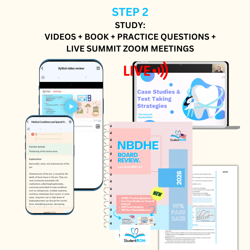 StudentRDH has carefully created a suggested sequence that you can easily follow to study for the NBDHE.